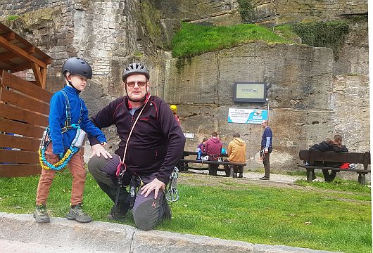 Po ferratách v Dolních Zálezlech a v Povrlech jsme s JayKayem začali pošilhávat po lokálním masterpiecu, kterým je klettersteig na Pastýřskou stěnu v Děčíně. Od matičky Hlavičky jsme vypůjčili ferratovej set s pružnými smyčkami, který má delší dosah než můj se smyčkami s pevnou délkou. Do Tetschenu jsme vyrazili v neděli 9.4.2023 v rámci velikonoční trilogie Kytky - Vejce - Ferrata. Pastejř nás ale solidně vyškolil.